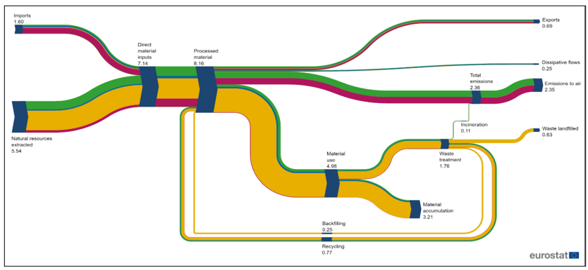 The Circular Material Use Rate (CMUR) quantifies the proportion of all materials consumed in the EU that come from recycled waste. It provides an essential measure of progress toward a regenerative economy. As demand rises across industries, keeping materials in play for longer and minimizing waste becomes increasingly urgent.